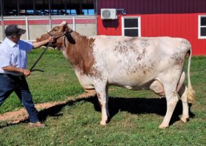 Reasons: Only two mature cows in the class, but I’ve given the first place cow the advantage on her rump structure being more level from hip to pins while also showing more depth and capacity to her fore and rear rib over the cow in second.